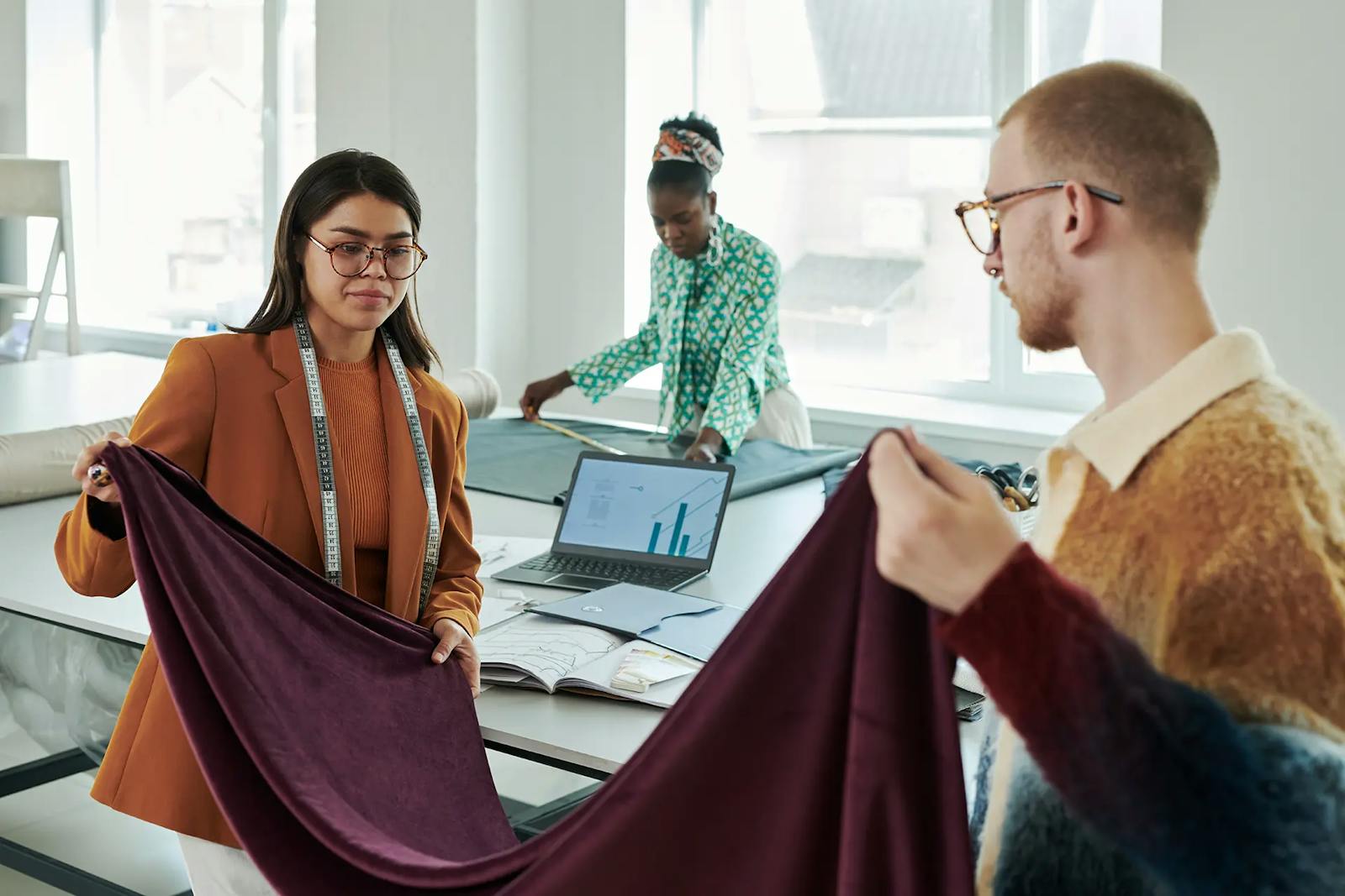 Fashion Designers Fold Textiles while Working on New Seasonal Collections